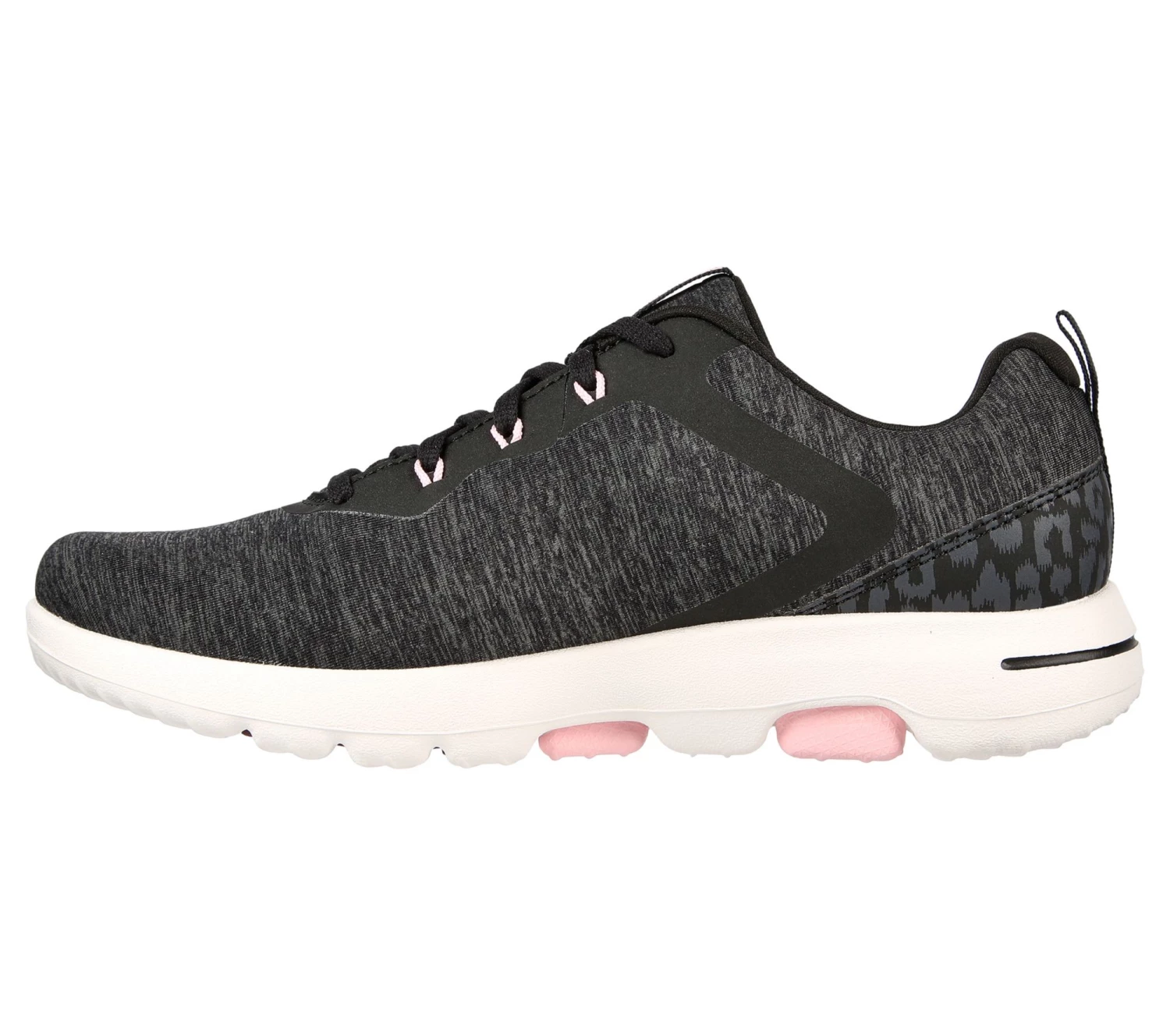 - Lightweight, durable heathered mesh upper and animal print heel overlay